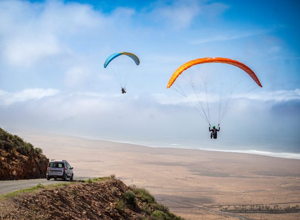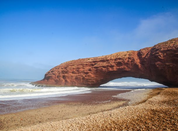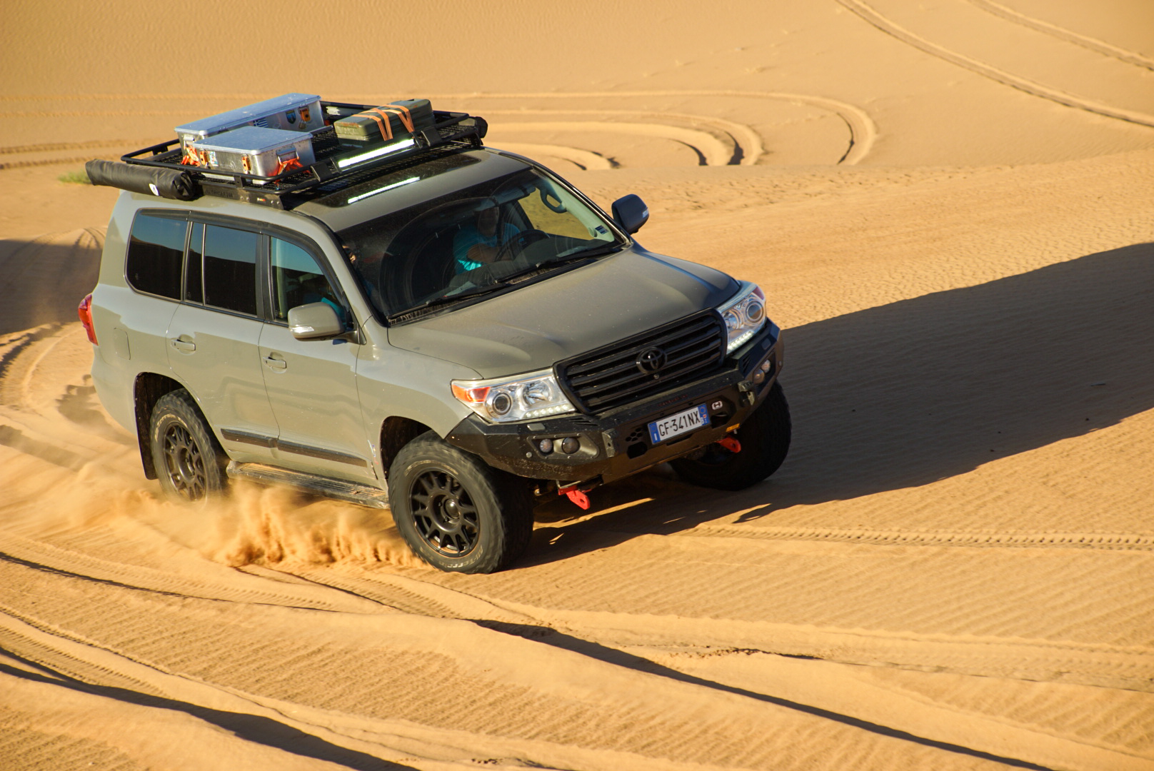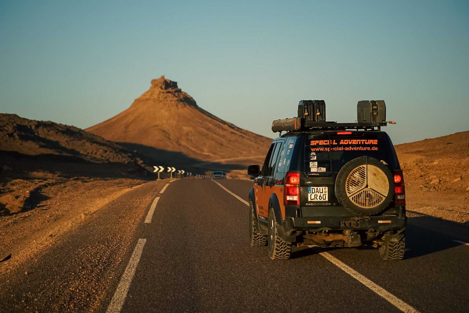 Weiter geht es entlang der Atlantikküste gen Süden, immer dem tosenden Ozean folgend. Zwischen schroffen Klippen und endlosen Sandstränden eröffnen sich atemberaubende Landschaften, während wir auf abwechslungsreichen Pisten an verlassenen Schiffswracks vorbeirollen und durch malerische, jahrhundertealte Dörfer gleiten. Schließlich nehmen wir die schnurgerade asphaltierte Küstenstraße, die uns beinahe bis zur Grenze nach Mauretanien führt und uns ein Gefühl von unendlicher Freiheit schenkt. Am Fischerdorf Dakhla angekommen, empfängt uns die berauschende Mischung aus azurblauem Meer, Palmenoasen und bunten Kitesurfern auf der Lagune. Nach diesen Eindrücken steuern wir den versteckt gelegenen Wüstenwasserfall an, dessen kühle Quelle inmitten sandiger Weiten wie ein Wunder wirkt. Über sandige Pisten und rotgoldene Dünenbahnen erreichen wir schließlich Merzouga, wo wir uns eine Woche Zeit nehmen, um im Sand zu fahren, am Lagerfeuer zu verweilen und in die Stille der Sahara einzutauchen.