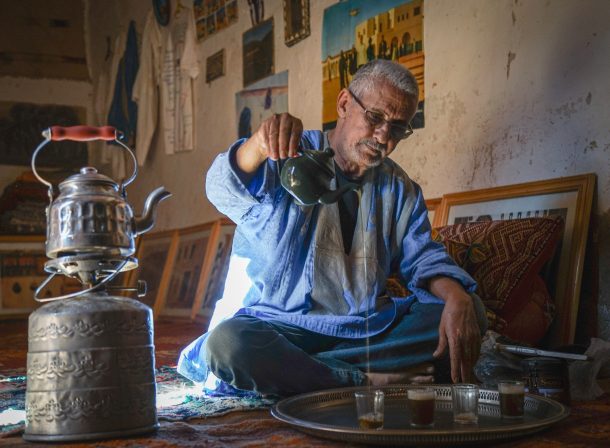Weiter geht es Richtung zum Atlantik, vorher zweigen wir ab um den Anti-Atlas durchqueren. Auf einsamen Pisten entdecken wir uralte Felszeichnungen, stumme Zeugen vergangener Kulturen, und genießen die wild-schroffe Schönheit dieser außergewöhnlichen Landschaft. Immer wieder tauchen wir ein in Landschaften, die wie ein Gemälde Salvador Dalís anmuten: Ockerfelsen schimmern in der Mittagssonne, knorrige Arganbäume stehen einsam auf windgepeitschten Hügeln und Salzpfannen breiten sich wie gläserne Ebenen vor uns aus. Unterwegs öffnen uns die Einheimischen ihre Türen und Herzen, schenken uns Minztee wie alten Freunden und winken uns fröhlich von staubigen Pfaden zu. Jede Begrüßung lässt erahnen, wie tief verwurzelt Gastfreundschaft hier ist.